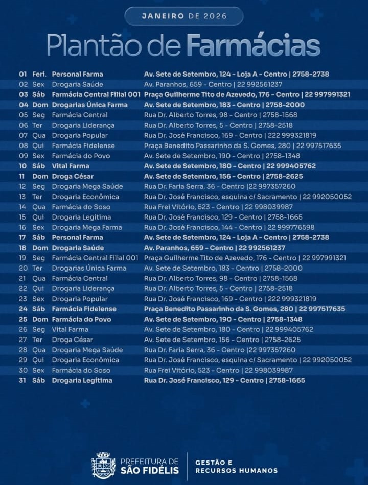 PLANTÃO: Farmácias e Drogarias